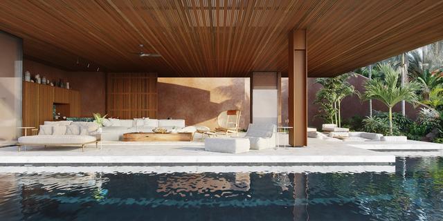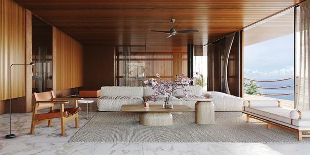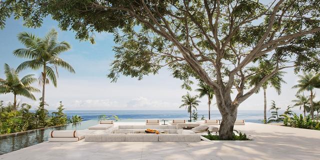 地中海風格的室內設計與印尼風味混合。從龍目島和印度尼西亞的其他地方采購了一系列活潑自然的水泥,奶油色大理石和深色鐵木。