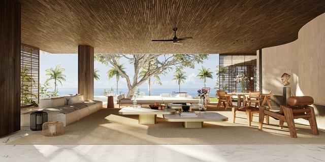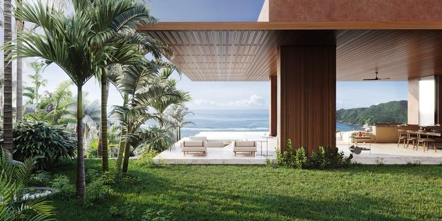 該住宅坐落在海拔60米處,享有海洋和熱帶森林的全景,其主要生活空間完全開放。