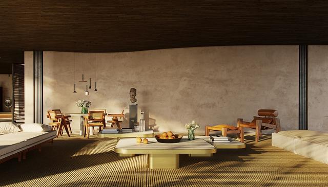 室內設計也采用了一種簡單的方法,其中最小的調色板正在發揮作用。來自土地的米色水泥用于覆蓋房屋,給人一種當地的感覺。