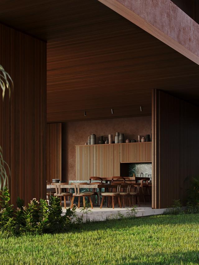 在對該場地進行研究后,設計師們受到了培育周圍植物的土壤紅褐色的啟發。整個房屋的建筑和內墻顏色采用樸實的調色板,將其與棲息地融為一體。