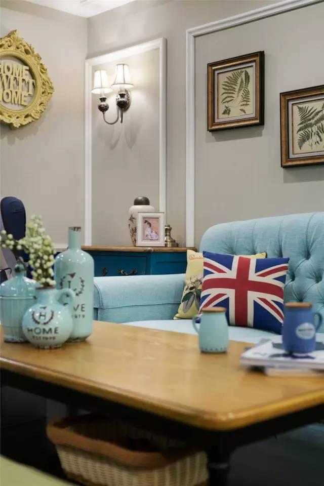 ▲典型美式元素的抱枕打破色彩的單一,起到很好的畫龍點睛的作用。
