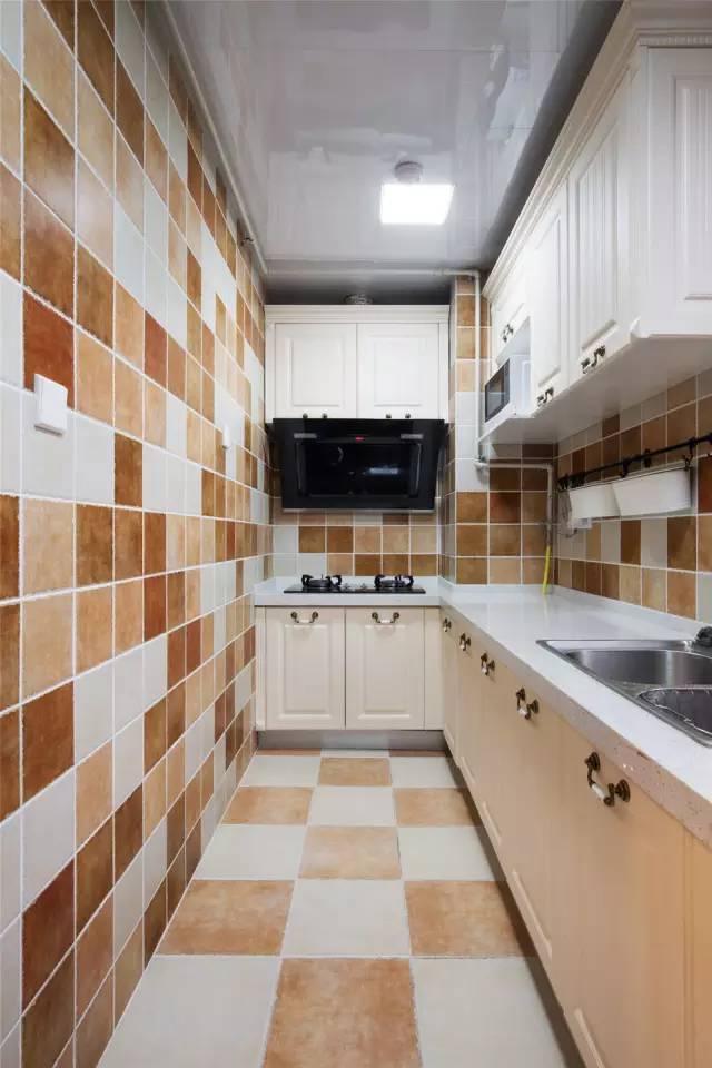 然后就是老婆最喜歡的廚房了,整體基調以藍白為主,看著非常清爽大方。本來夏天在廚房做飯就非常熱,這樣看著心里能涼快不少。當然,這里的實用性也沒忽視,比如空間利用率非常高,加上櫥柜中間的墻面安裝了不少收納神器,做起飯菜來自然更為方便、效率。