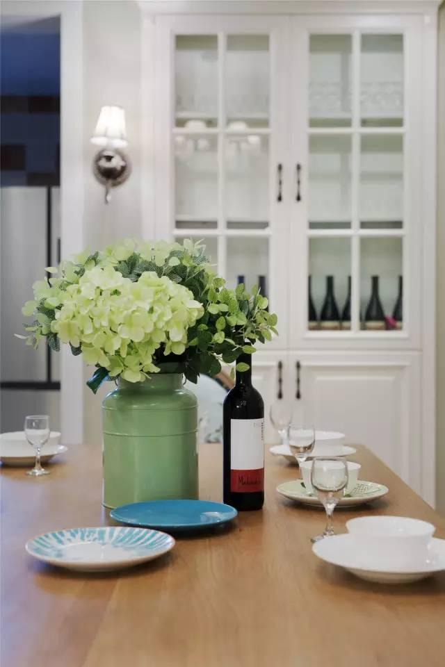 ▲將生活陽臺和廚房整合,重新規劃之后擴大了廚房門,與餐廳之間的墻做成一排酒柜,有效利用空間,同時增加儲物功能和視覺美感。