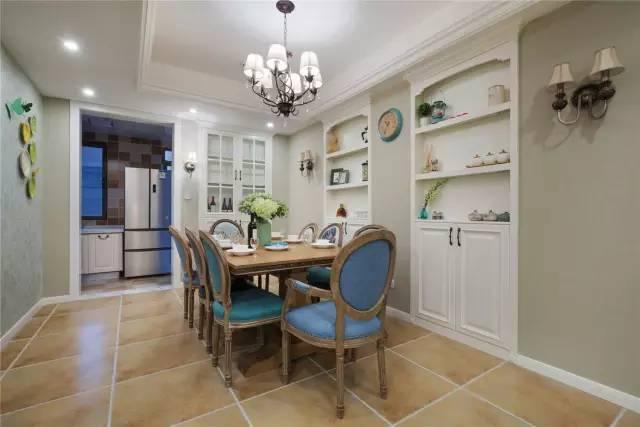 ▲換一個角度再看看餐廳和廚房,餐廳與書房之間的墻上做了一排展示柜,豐富這個空間的細節設計,同時也方便收納和展示。