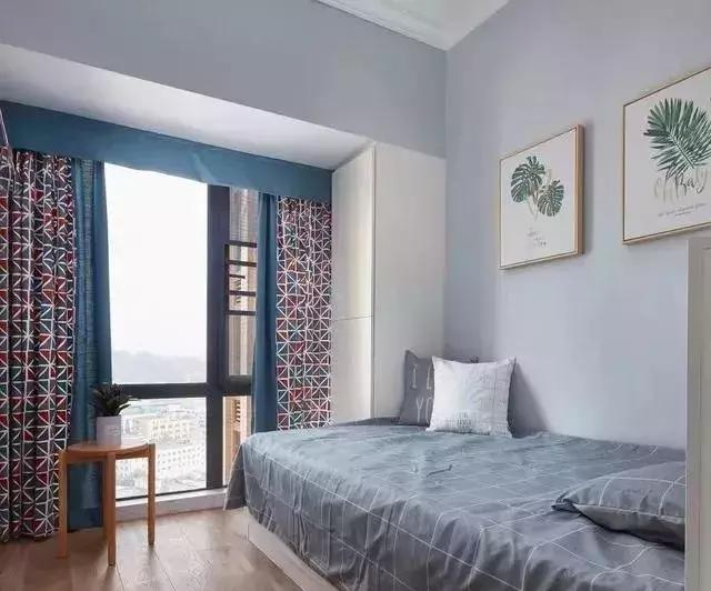 來到次臥,整體效果清新素雅,看著很舒適,比如墻面的裝飾畫不錯,文藝范十足,也有飄窗,采光和視野也行。另外就是床,靠墻擺放,這樣能夠騰出更多的空間以備它用。