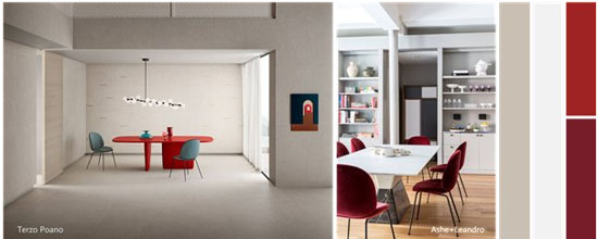 原本這是一組女性的色彩,但是在中國流行色協會趨勢研究中心以往的調查中顯示,偏愛紅色的人,男女比例是相當的。原來紅色同樣是一種男性的色彩,象征男性的力量與激情。在埃及的壁畫中,女性的皮膚用黃色點染,而男性的皮膚則被渲染成紅色。所以,用紅色去布置家居更易被男女主人達成共識。