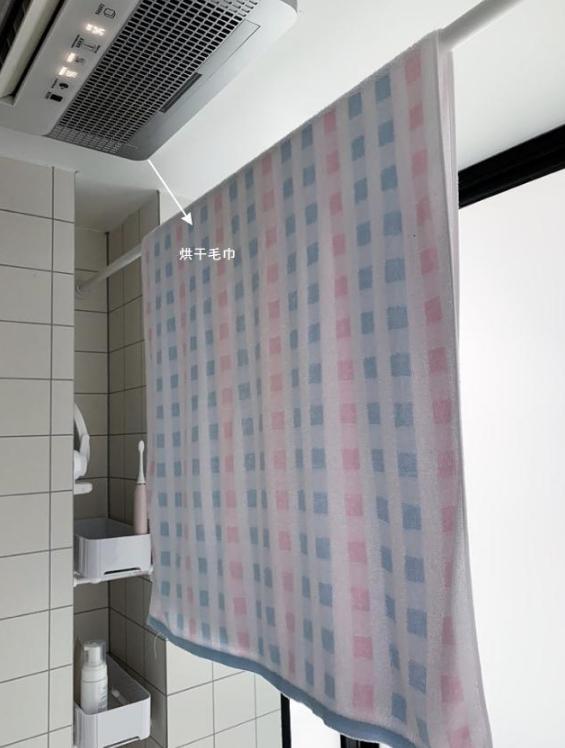 像上圖,有屋主甚至會在暖通下方安裝一個伸縮掛桿,用于掛毛巾和內衣,畢竟暖通的打開的時候,也可以順便起到烘干衣物、毛巾的作用,一舉兩得。畢竟在南方的冬天,若是不用到烘干機,一旦遇到陰雨天,衣服可以持續三四天曬不干……