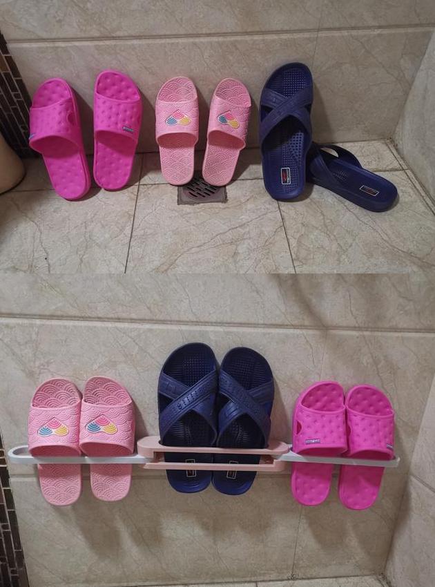 也正因為南方衛生間的空氣更潮濕,所以浴室里的拖鞋更需要及時瀝水,避免因為控水不及時導致拖鞋粘粘的情況,一般會用到這種拖鞋瀝水架,在存放濕拖鞋的同時,可以給它們瀝水,美觀衛生,存取便利,而以上這款一拖三的折疊瀝水架,只需添置一個,打開后就能存放一家三口的三雙拖鞋,非常實用。其實拖鞋瀝水的問題,我到覺得南北差異不算大,北方家庭也用得著!