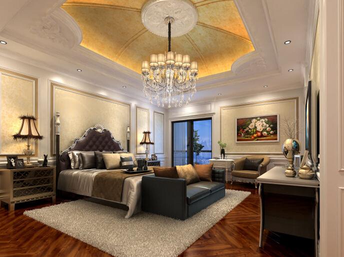 3、臥室吊頂?shù)母叨仁歉鶕?jù)你家房頂與地面的距離來(lái)裝修的,如果你家的距離相對(duì)于要高一點(diǎn),那么吊頂就可以做厚一點(diǎn),如果較窄,那么也可以做薄一點(diǎn),一般很多家庭在裝修了吊頂之后,距離大概還有2.6米高,四周的距離甚至可以只有2.4米。