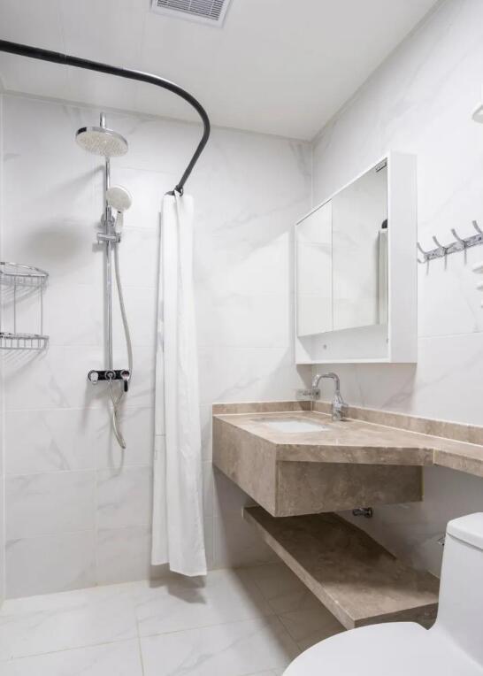 衛(wèi)生間干濕分離會(huì)更干凈整潔,也能延長(zhǎng)使用設(shè)備的壽命,打掃的時(shí)候會(huì)更加方便。如果你家的衛(wèi)生間面積是比較大的,那你想怎么干濕分離都可以。如果你家的衛(wèi)生間面積很小,在2-3㎡,建議你選擇“磚砌臺(tái)面+馬桶+浴簾”組合或者“小臺(tái)盆+小馬桶+淋浴房”的組合。