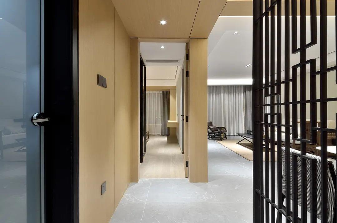 ▲過道整體墻面木色的基礎,房門與木色墻面一體的隱藏設計,顯得簡潔統一而大氣。