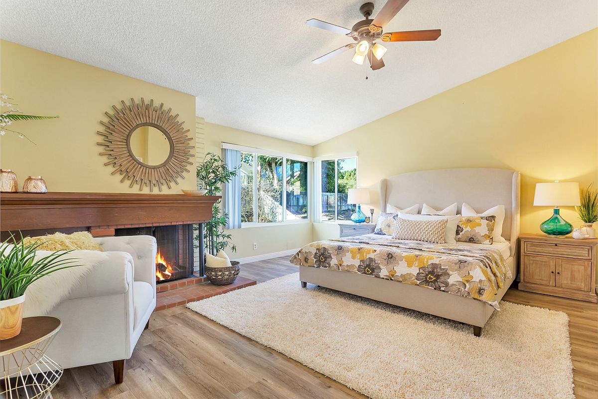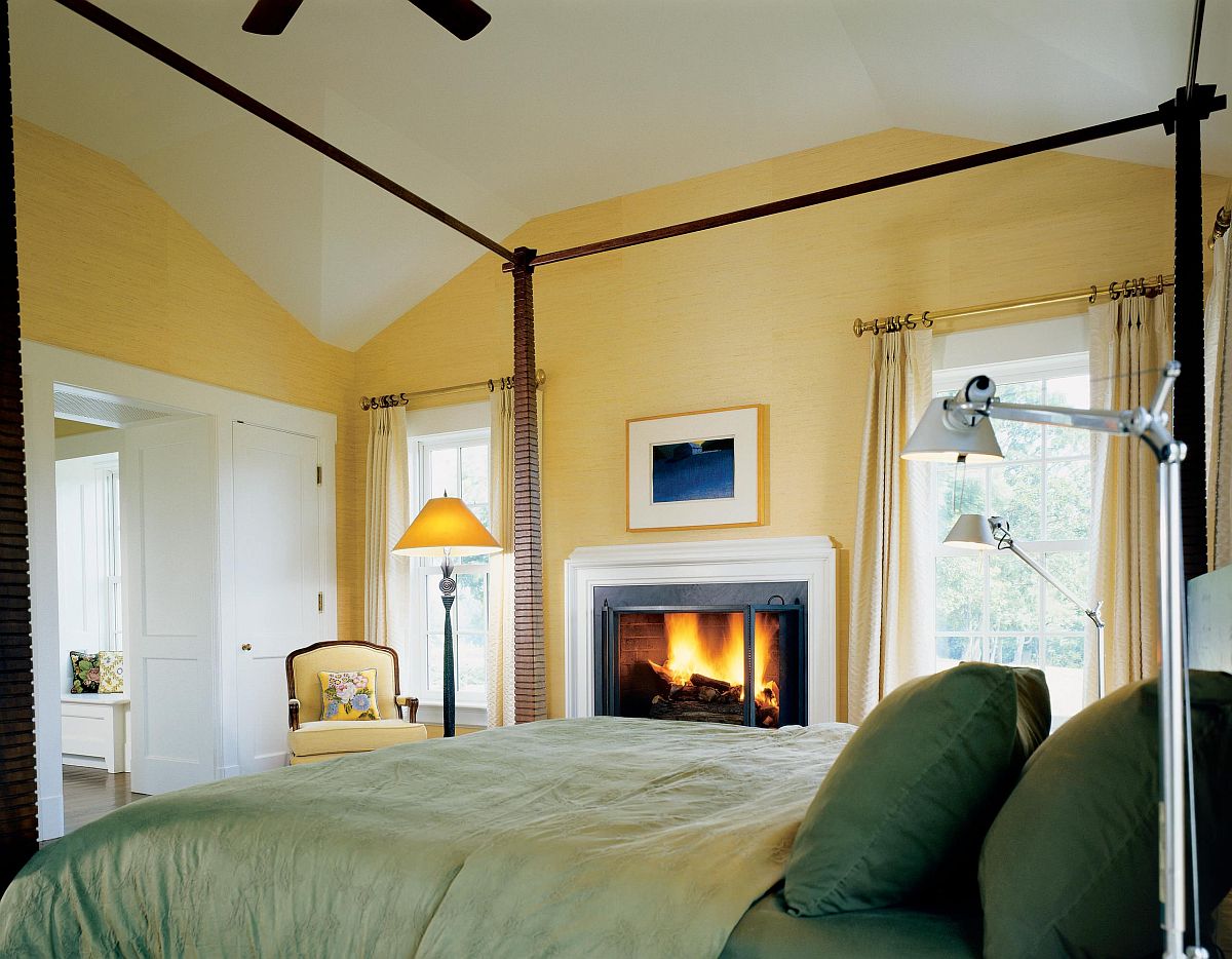 鄉(xiāng)村風(fēng)格與臥室中的黃色美景相結(jié)合。
