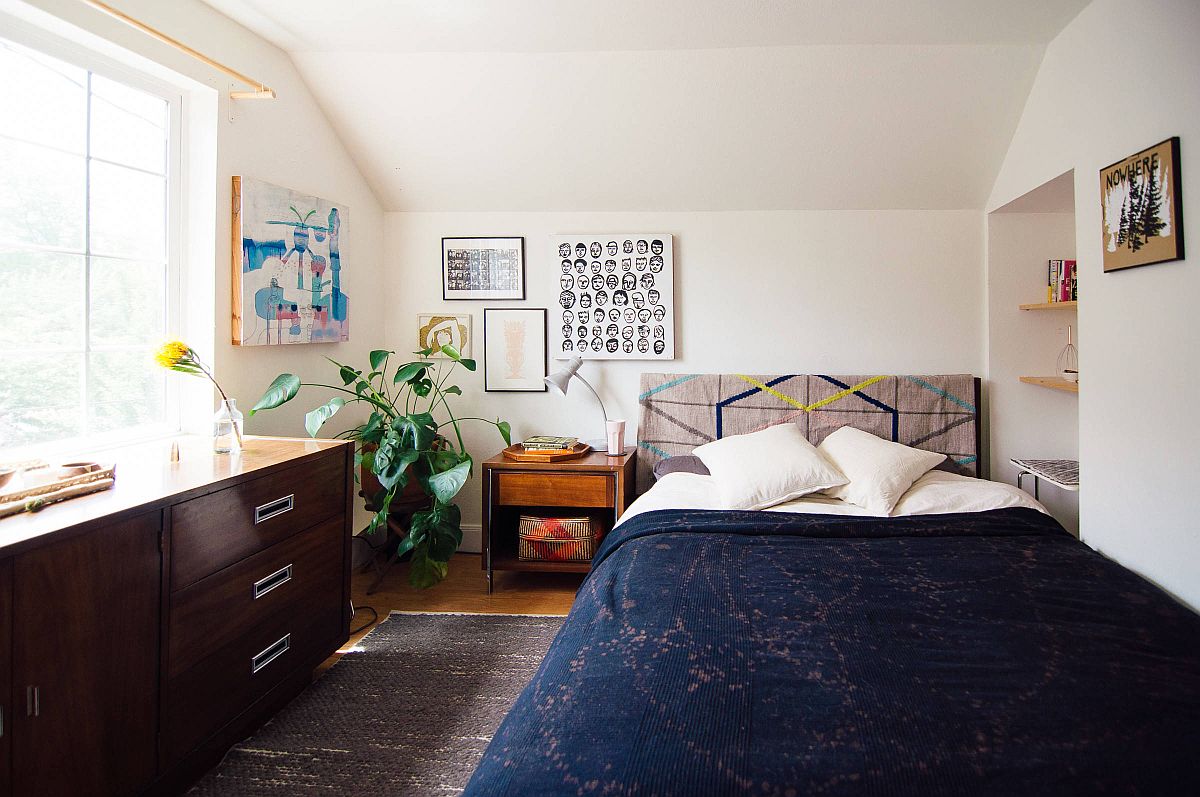 床頭板上的活動(dòng)墻在這里產(chǎn)生了立竿見影的效果。