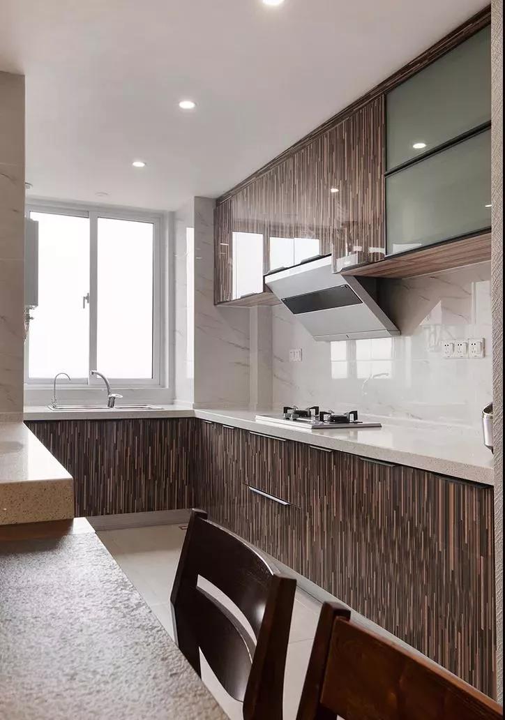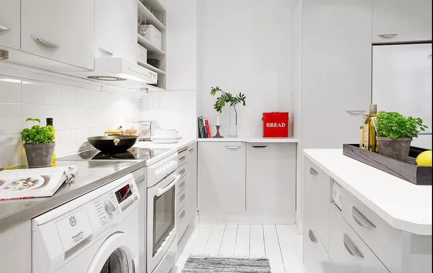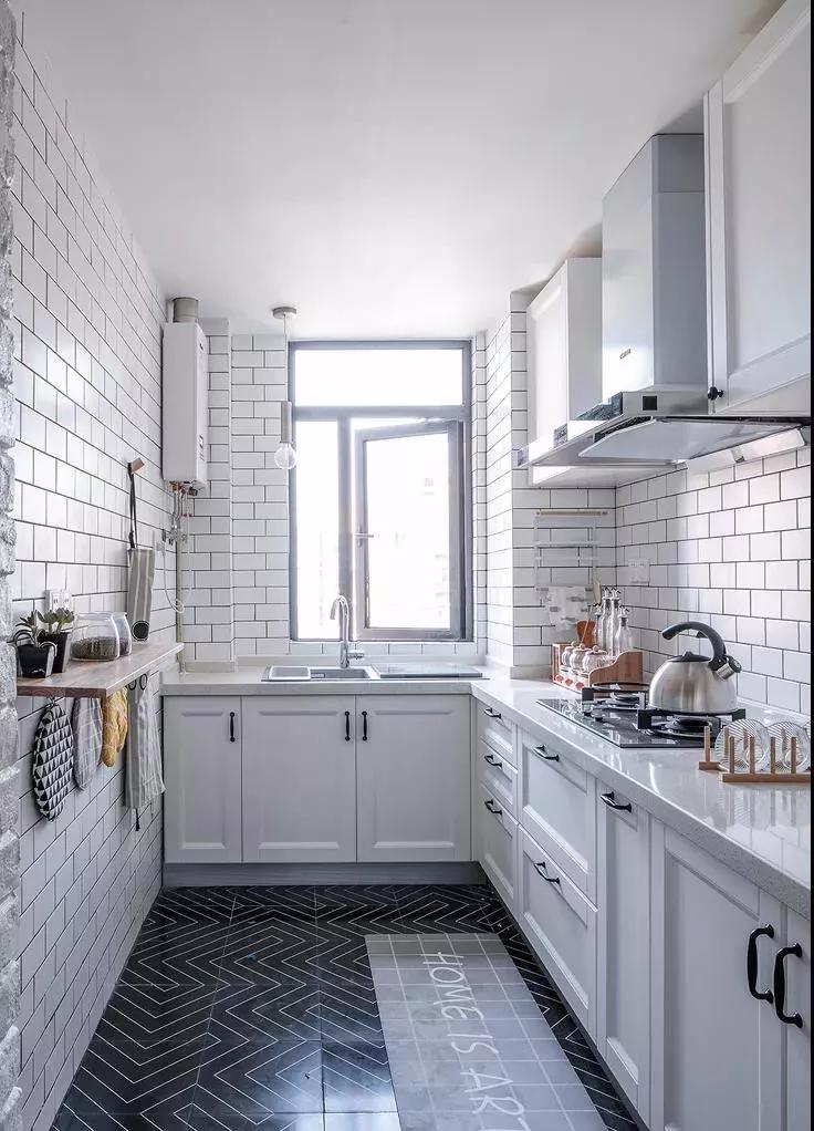 不過如果廚房實在是太小了,還是考慮減少一邊的櫥柜,做成雙一字型或者L型吧。