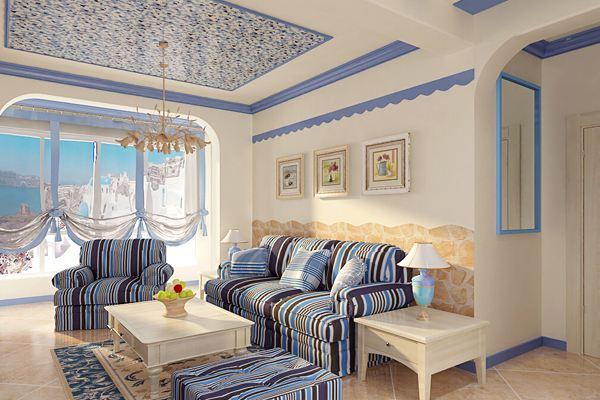 如果你配色不當的話,比如全部用的是紫色,會感到深沉。其實,我們可以在顯眼的一角中添加紫色,比如窗簾或者燈飾,既不破壞整體地中海的風格,又顯得浪漫而有情調。