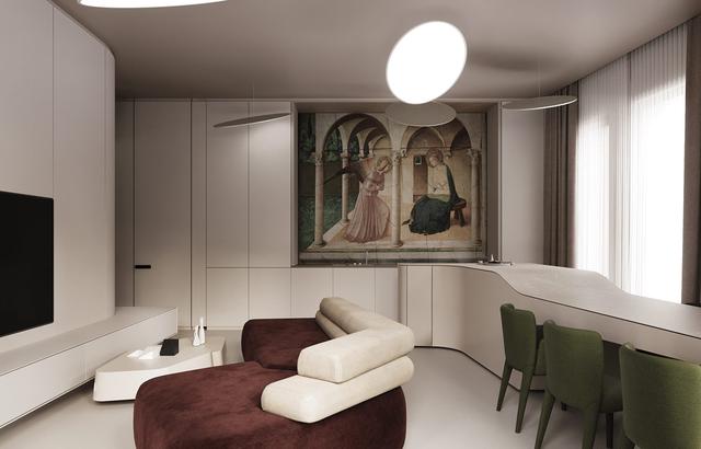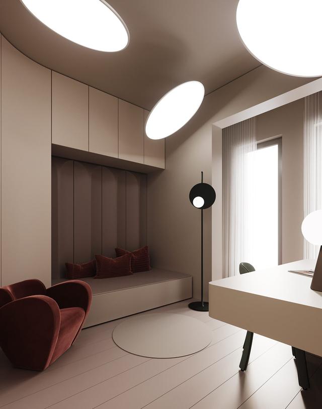 紅色的中國的傳統(tǒng)色,把超現(xiàn)代的未來主義室內(nèi)設(shè)計與“紅”結(jié)合在一起,再以獨特的家具設(shè)計,杰出的照明裝置和創(chuàng)造性的配色方案共同打造了這個充滿未來感的家庭內(nèi)部空間,由Buro511設(shè)計和視覺化。這個場景并沒有設(shè)定在遙遠(yuǎn)的先進(jìn)文明中,這只是一個現(xiàn)代公寓,有一點星際飛船的靈感。干凈整潔的房間設(shè)計與極簡主義美學(xué)相結(jié)合,在對比色方案中使用柔和的色調(diào)使它們舒適地適應(yīng)日常生活。聯(lián)合色彩的故事貫穿了家庭設(shè)計到時尚的可靠的連續(xù)性。不對稱的作品為房間的劃分提供了新的機會,而沒有建筑的剛性,也沒有被限制的感覺。