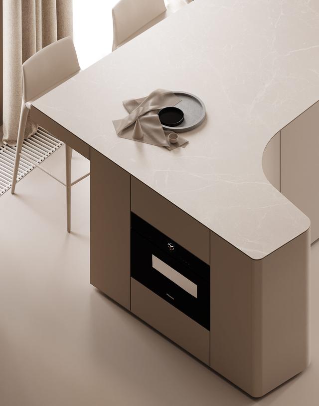 光滑平整的白色面板揭示了內(nèi)部的儲藏空間,其中一些是一件古典藝術(shù)品的家——還有廚房的水槽!