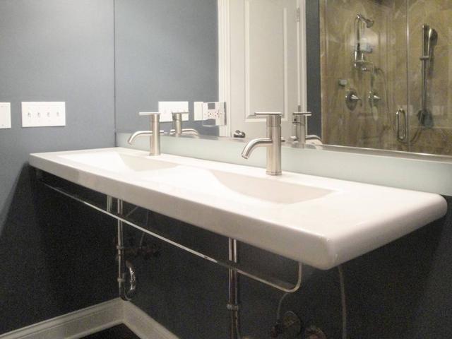 臺面:要做好前擋水條,防止臺面上的積水流到地板上——即使地面安裝了地漏,積水流下去也會使這里看起來很臟。畢竟是直接暴露在公共區域的洗手臺,必要的整潔還是要保持。