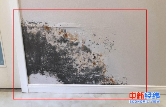 墻面是最令業主不滿意的地方。徐楓表示,在許多業主家中,都出現了大面積的墻紙霉變現象,黑色的霉斑在墻面上十分顯眼。他說:“墻面沒有找平就貼上了墻紙,導致很多墻紙都出現了破損、脫落、翹角兒的情況。工人貼墻紙也很粗糙,很多接縫沒有接好,很不規整。”
