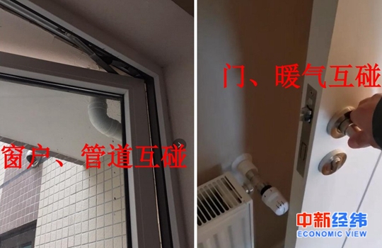 除了質量問題,保利精裝房的施工工藝也不能令業主們滿意。徐楓稱,他們家主臥的門框一拽就掉下來了,門框里面的空隙也很大;另一戶業主家的一扇外推窗,正好被外面的管道擋住,窗口只能開起一點,起不到通風效果;有業主家出現了門與地面刮碰、與暖氣片磕碰的情況。
