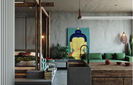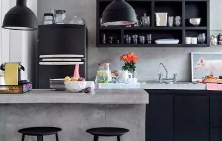 其實水泥在如今的家居設計里可塑性很高,不僅可以用來做地臺,灶臺以及沙發,,還可以做隔斷,以及各種需要的柜子物件。