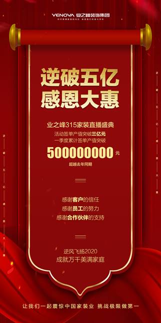 隨后,張鈞再接再厲,2月26日再次為旗下的全包圓直播帶貨,3月15日又舉行“業之峰315家裝直播盛典”,結果讓業之峰一季度累計簽單產值突破了5億元。