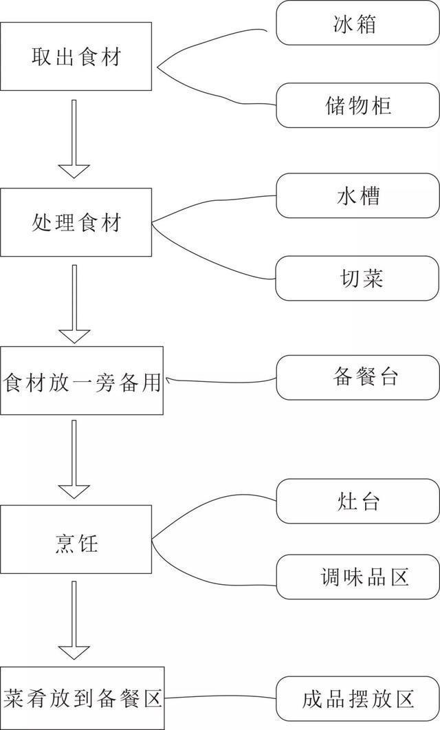 廚房的基本動線是取→洗→切→炒→盛,順時針或逆時針都可以,根據你家的生活習慣,怎么方便怎么來。