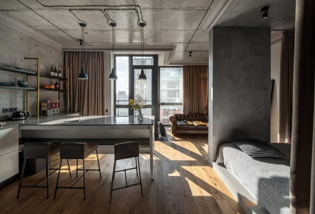 為了追求時(shí)尚感,實(shí)用并且寬敞的小窩,結(jié)合動(dòng)態(tài)的城市快節(jié)奏生活,暴露的管道和電線,裸露的混泥土結(jié)構(gòu),讓整個(gè)空間很有質(zhì)感。