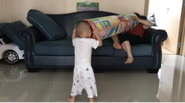 ▲擔心小孩爬沙發翻滾下來,不得不把沙發靠在走道墻放著,自從這樣放之后,客餐廳倒是為孩子騰出了更寬敞的玩耍空間。