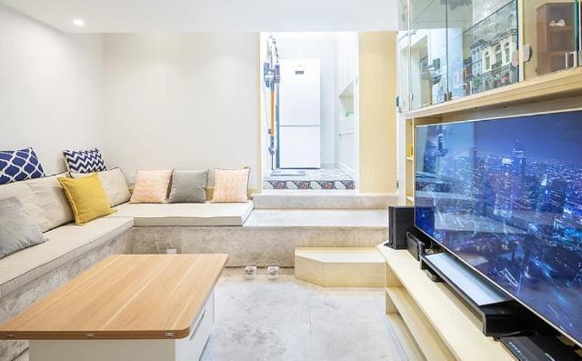 這種下沉式客廳設計,讓我家的層高變高了,空間看起來更加寬敞大方。