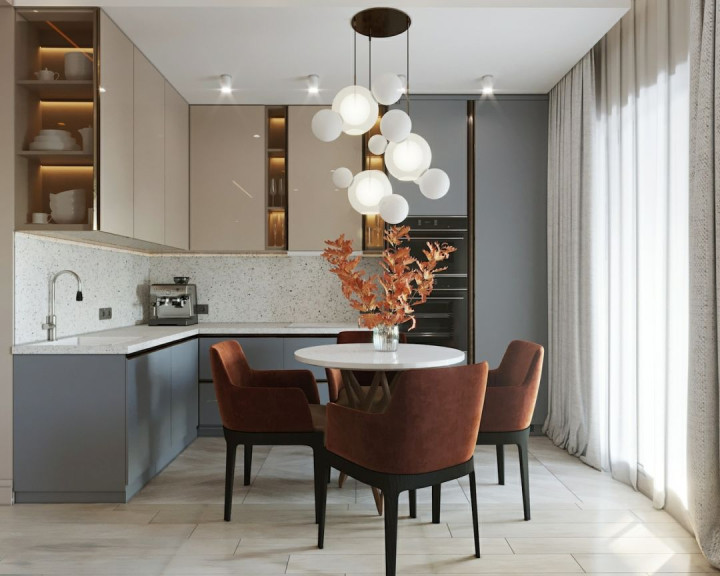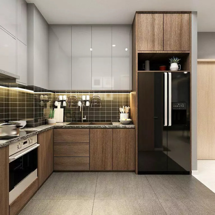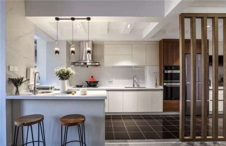 打造出整體式廚房風格,設計時預留家電的空間,再把家電在嵌入到適宜位置,不僅告別家電雜亂感,使用起來也人性化,也增大了使用空間。