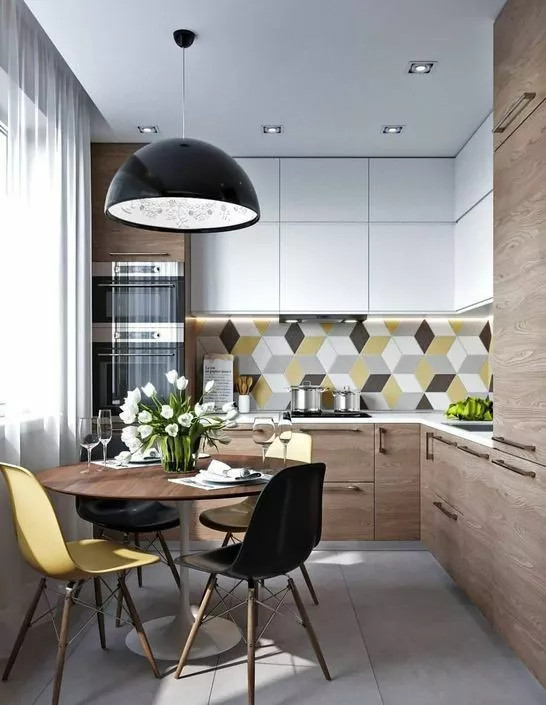 墻體最好不要印立體感圖案,會在視覺上顯得狹小,產生凹凸不平的錯覺。墻面忌花花綠綠,宜單色調,以淺色為主。櫥柜也不宜使用較暗的顏色,淺灰色、奶黃色等都是不錯的選擇。