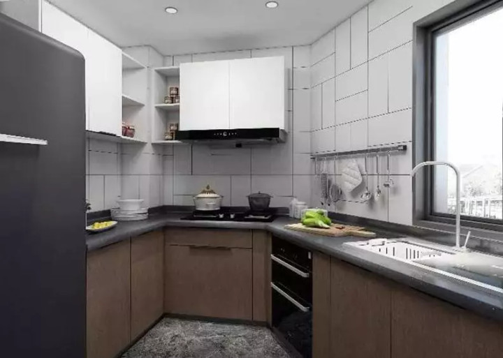 廚房的空間很小,面寬較窄需要充分利用拐角的空間,比如使用轉籃可擺放更多的鍋碗瓢盆。