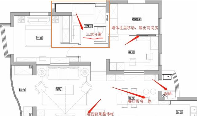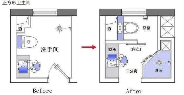 衛生間要做三分離,并不是每個衛生間都能實現的,決定衛生間實現三分離的關鍵是形狀。