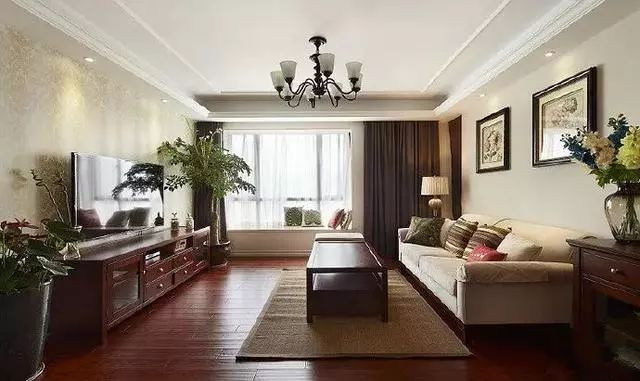 2.地面顏色:淺棕色。淺棕色地板是美式風格比較顯著的特征之一,用來達到復古的效果。如果覺得顏色太深不喜歡的話,也可以選擇淺黃色。