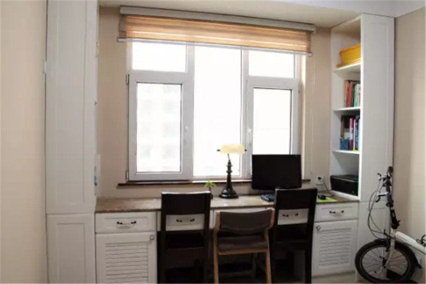 或者直接將自家屋內的飄窗設計成書房,飄窗設計一組層架柜,