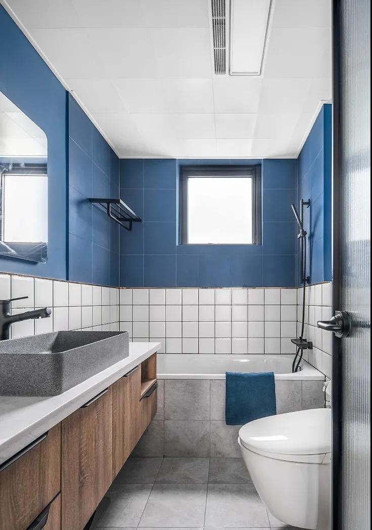 藍色瓷磚的半墻形式讓復古記憶涌流更富有個性和腔調