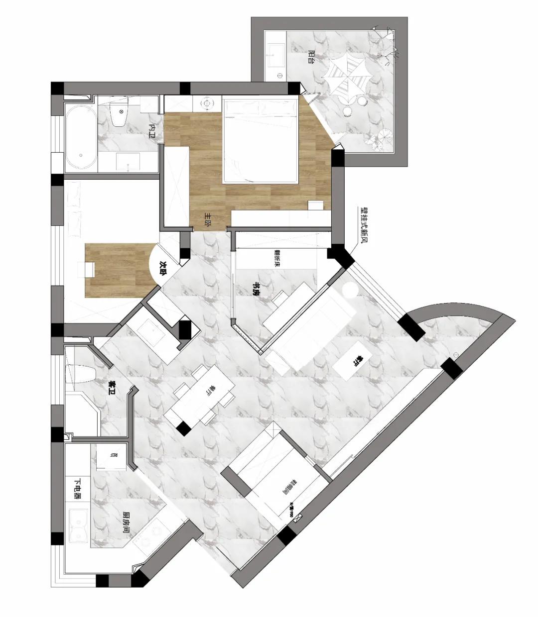 借助這面墻的空間展開后就可以把書房變成臥室了靈活切換功能