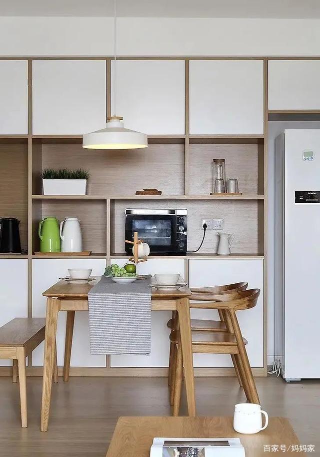而如果在餐廳定制餐邊柜,不但能收納餐廳內(nèi)的各種零碎物品,也可以收納小廚電等廚房用具,分擔(dān)廚房收納不足帶來(lái)的壓力。
