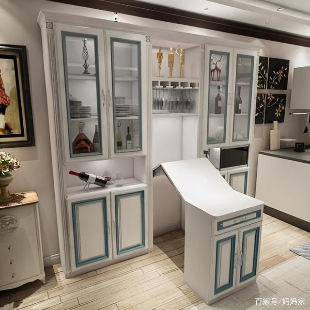 對(duì)于小戶(hù)型房子客餐廳空間比較小家庭,在餐邊柜中設(shè)計(jì)隱形折疊餐桌的方式,也是節(jié)省空間,實(shí)現(xiàn)功能疊加的好方法。