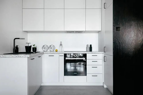 但黑色水龍頭、集成烤箱和黑色廚房配件