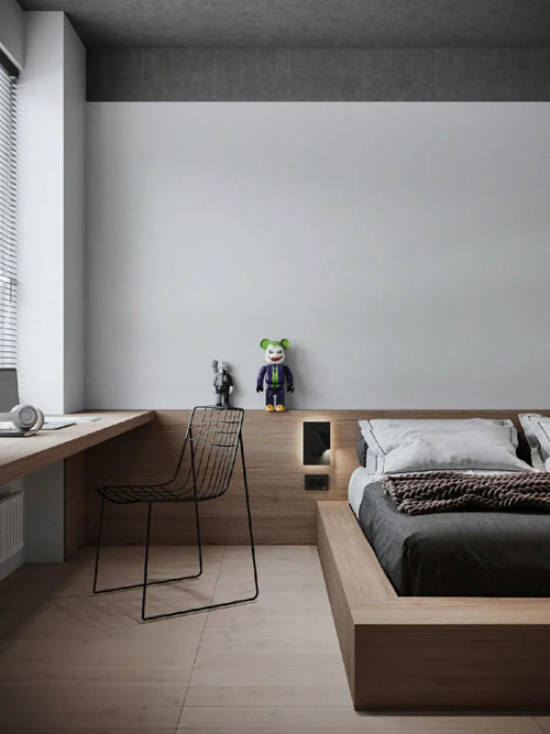 人造毛皮為原始的混凝土地板增添了溫暖的質感