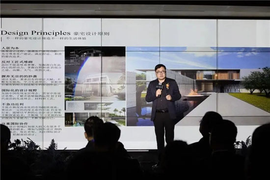 第一位大師設計分享嘉賓——金螳螂上海設計有限公司執行總經理、設計總院副院長蔣繆奕通過首次對外宣發的四個豪宅案例,詮釋了豪宅設計原則如何在設計中運用,以及設計師如何深入思考設計滿足家庭需求的內涵。