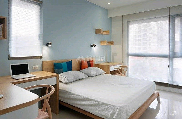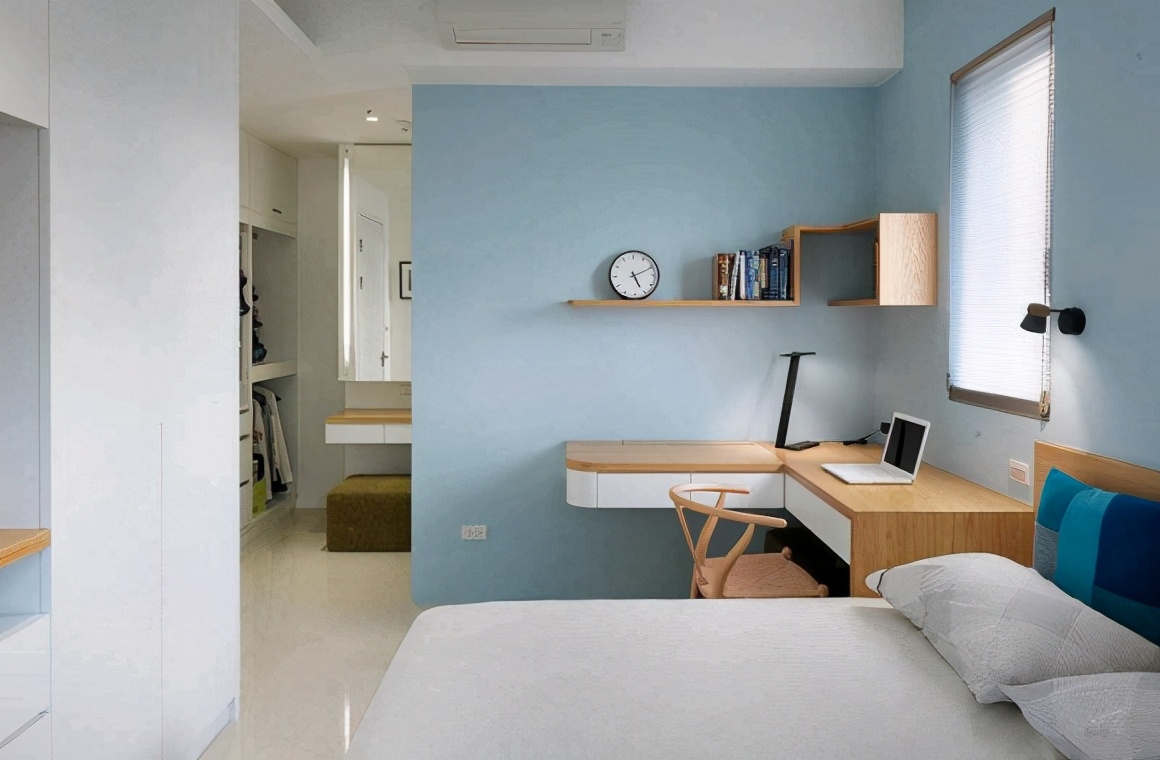 主臥兩邊都沒有擺放床頭柜,而是擺放書桌,感覺會更實用些,床頭柜只能放一些小東西,收納功能比較差一些。