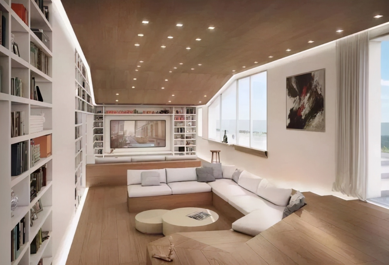 現在的設計越來越新穎了,客廳裝修不再是千篇一律了,現在正流行去客廳化、去電視化的設計。如果把客廳地面抬高30公分的話,會是一個怎樣的效果呢?把客廳做下沉式設計,會多一個休閑區域哦!