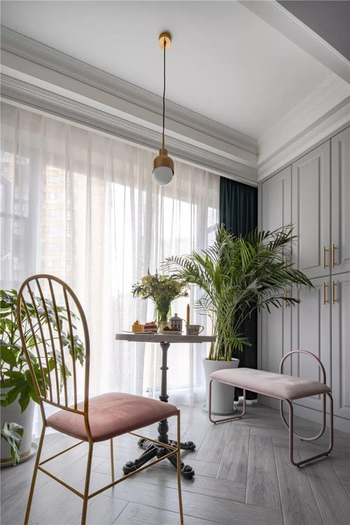 如果客廳面積比較小,陽臺就是它的備用區域,擺放單人沙發,讓陽臺完全成為客廳一部分。