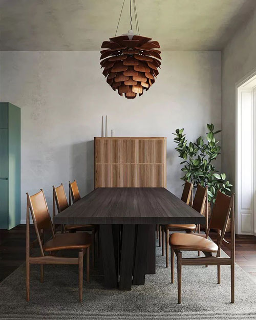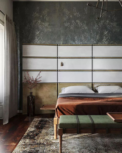 綠松石與青銅燈的結合讓住宅更像是一種藝術品。