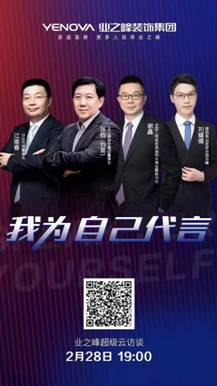 2月28日,“業之峰超級云訪談”繼續舉行,本期的主題正是“我為自己代言”。業之峰裝飾集團董事長張鈞(鈞哥)、分眾傳媒董事長江南春、全國工商聯家具裝飾業商會副秘書長謝鑫,以及搜狐焦點家居全國總編劉耀儒一起相聚直播間,暢聊了張鈞董事長“我為自己代言”的行動,以及此舉對家裝行業的借鑒意義。