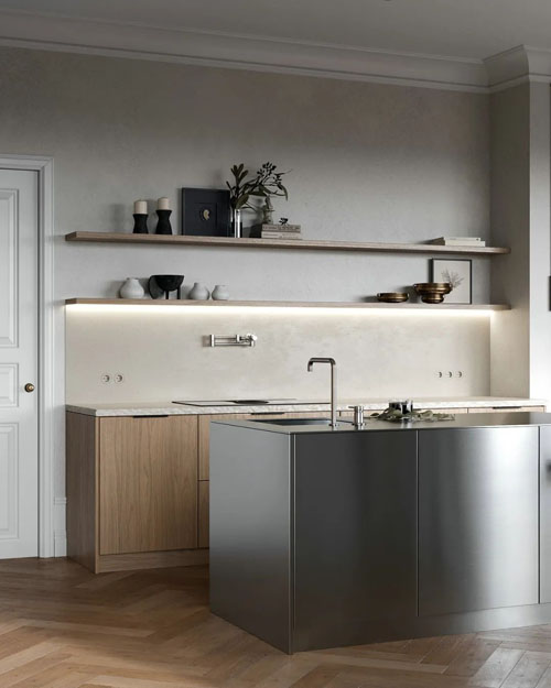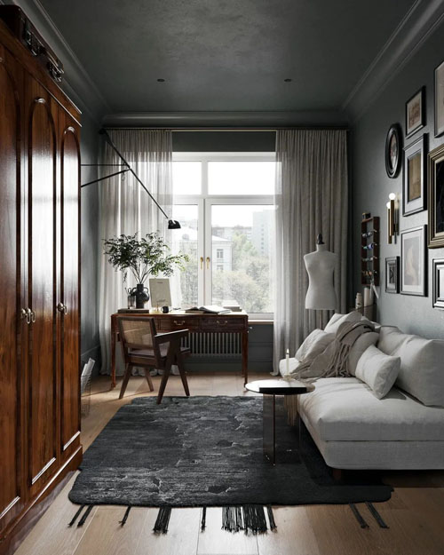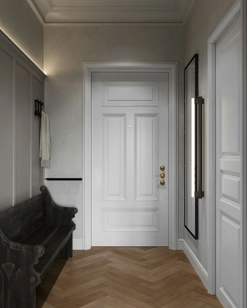 本案為新古典風,是YONONA NEZVANKINA新作,結合了經典的奢華和現代風格,運用不同材質的搭配以劃分出不同層次,追求一種冷靜、從容的環境氛圍。
