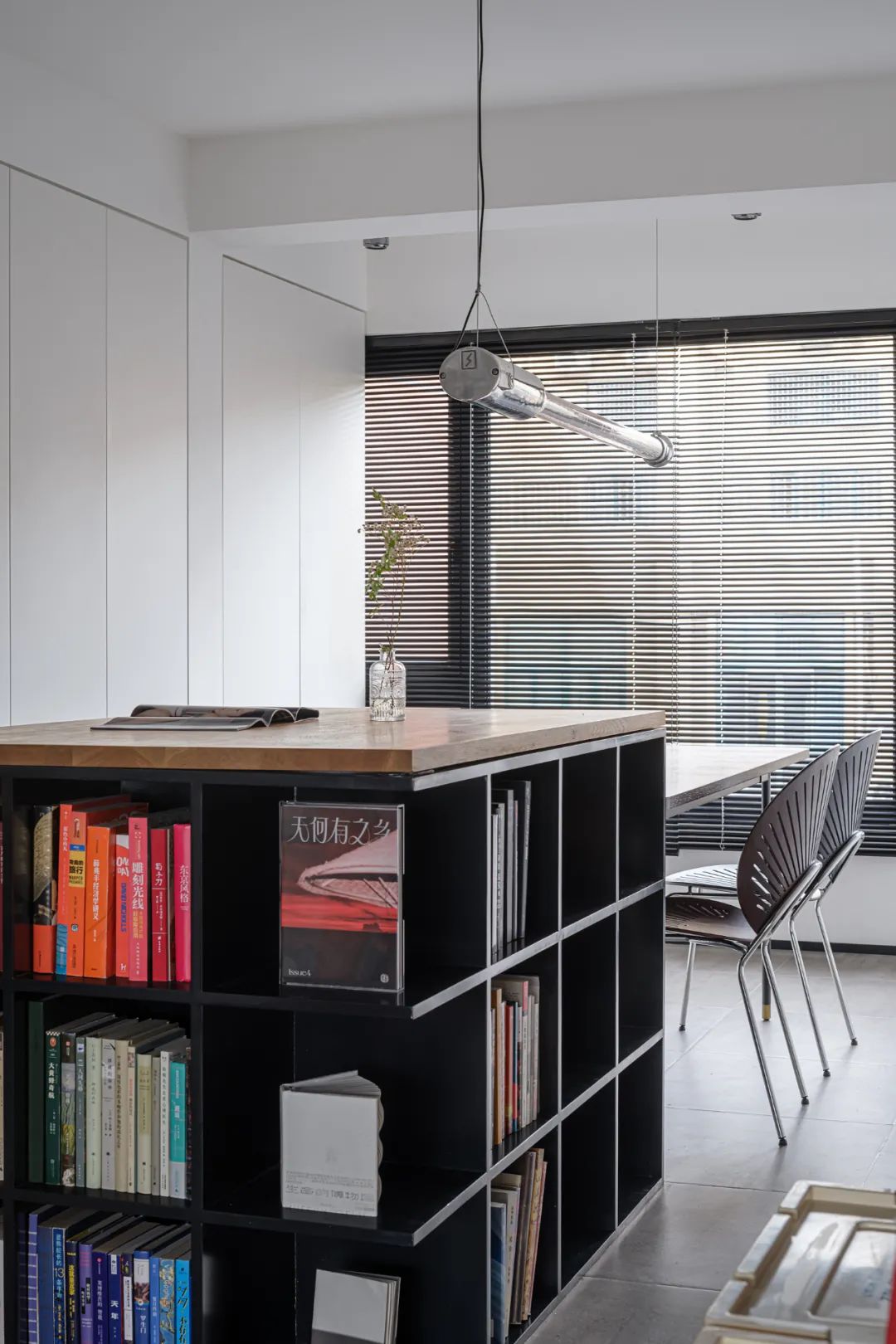 餐桌與中島的連接,保證最大程度的餐桌使用率,同時還提供了更多的書籍收納空間,滿足靈活辦公的需求。